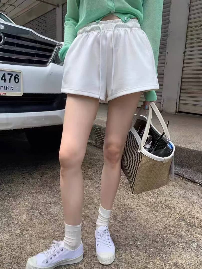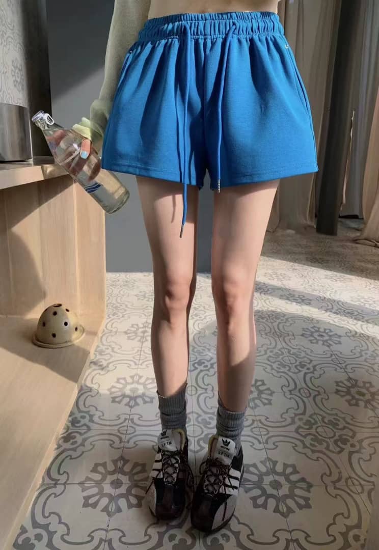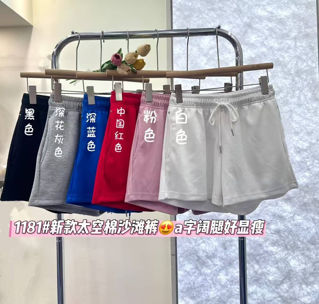 1181 空气棉短裤 弹力大 两个口袋 腰头平量23寸 长度33CM 颜色粉 白 灰 黑 蓝