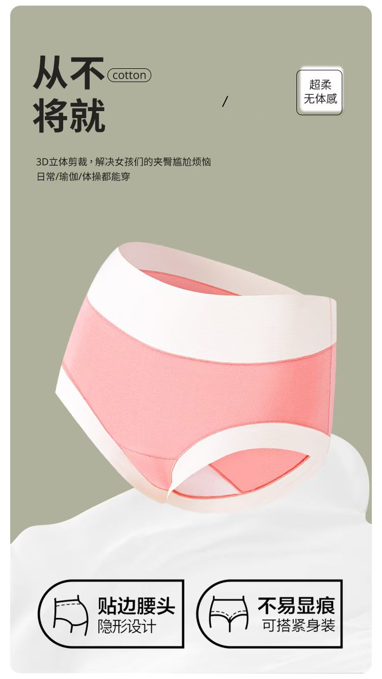 1889 大码高腰内裤 桑蚕丝底档抗菌 Cotton 棉布料 隐形贴身腰头 五色 蓝 绿 黄 肤 橘粉 平量腰头36CM/28寸 中长31CM 臀围可拉到56寸 大腿围可拉到100CM 适合32-42寸腰围