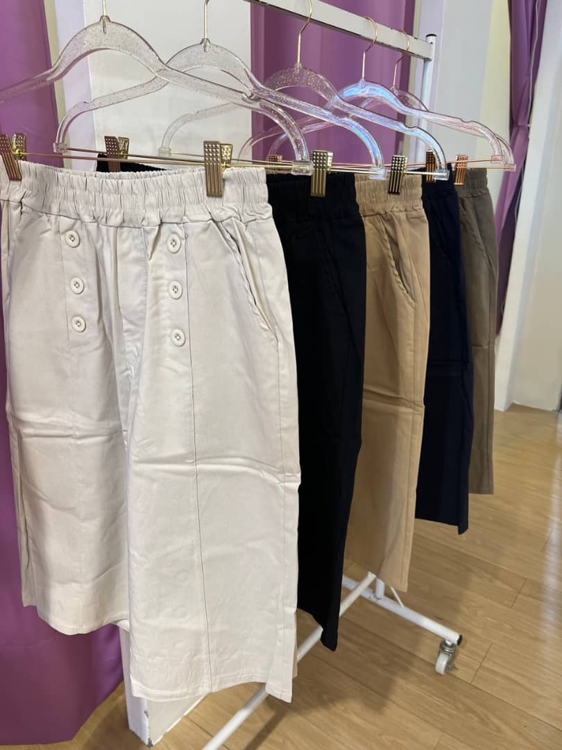 2672 六分百搭裤Lycra 两侧有口袋 布料弹性大 腰头平量 26寸 可拉到46寸 臀104 可拉到50 裤长62cm 颜色 黑 杏 卡其 棕