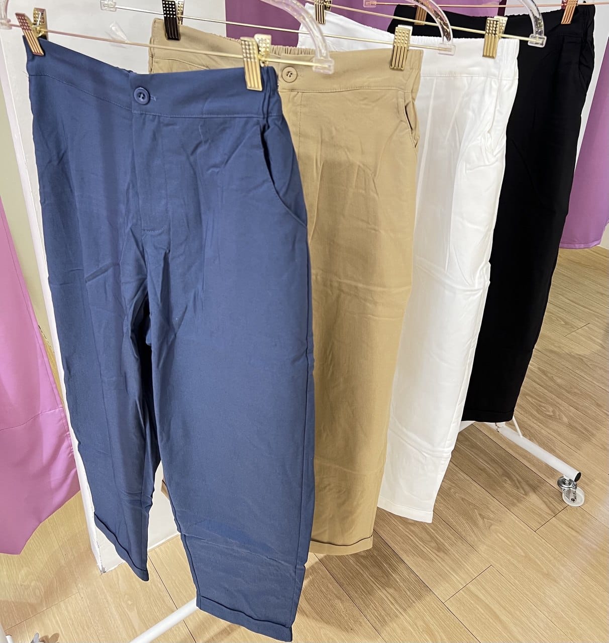 2683裤头有拉链七分裤窄脚百搭裤 Lycra布料有弹性 两侧有口袋 Waist 平量26寸可拉到44寸 臀 平量102cm (可拉到50寸) 裤长 87cm 适合XL-4XL 颜色 黑 蓝 白 可可